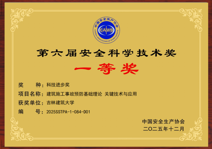 近日,中国安全生产协会公布第六届安全科学技术奖获奖名单,吉林建筑大学应急科学与工程学院牵头完成的 “建筑施工事故预防基础理论、关键技术与应用” 项目凭借深厚的理论创新、突出的技术突破和显著的实践成效,荣获科技进步奖一等奖,这是学院在安全应急领域斩获的又一国家级行业协会重要荣誉,标志着其在建筑施工安全研究领域达到国际先进水平。